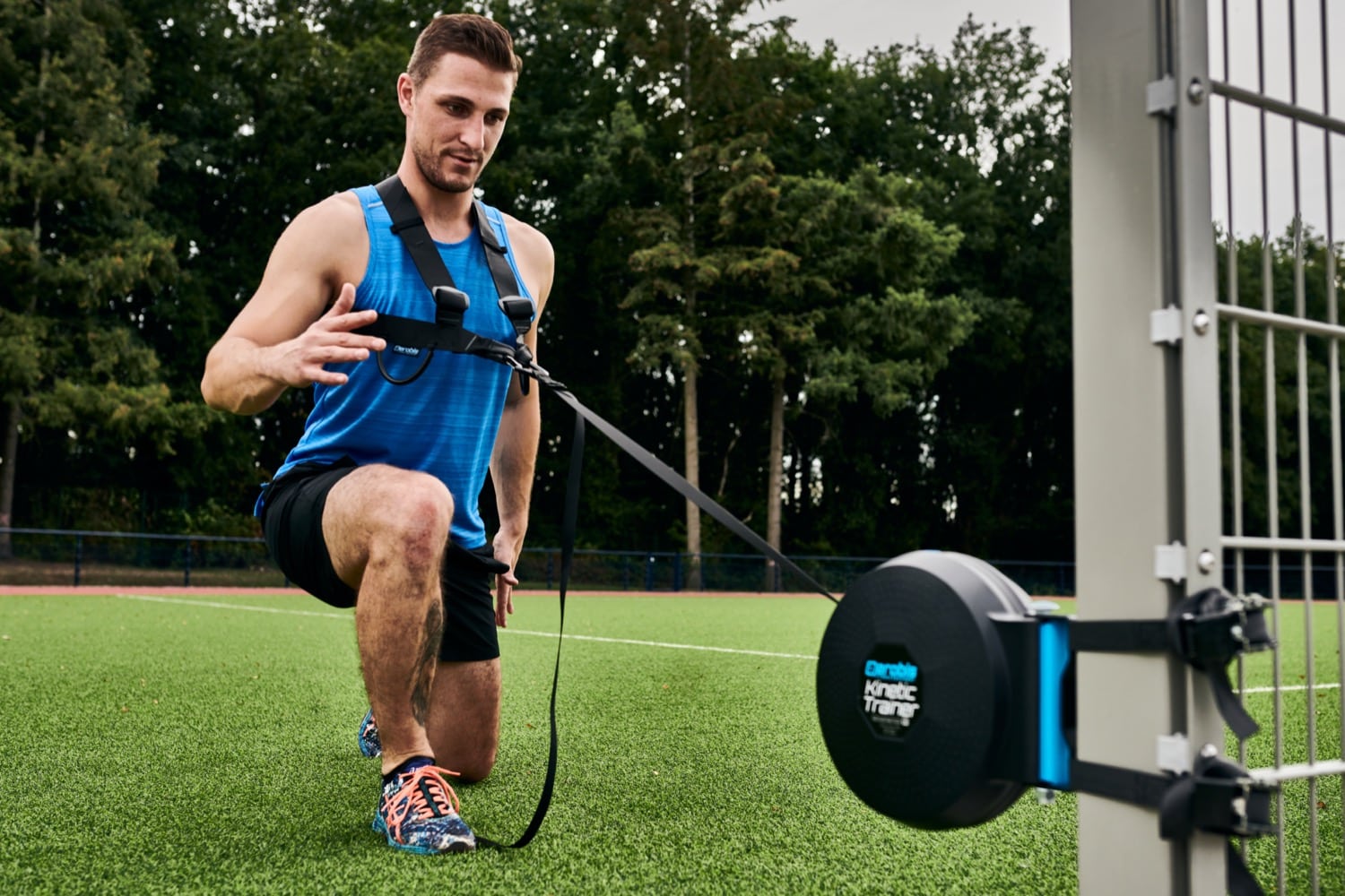 C’est aussi le compagnon idéal pour aerobis Entraîneur cinétique et s’étend de manière à ce que vous puissiez faire des squats excentriques avec. Le Kinetic Trainer doit être monté bas afin que vous puissiez vous positionner presque sur top du Formateur. Ensuite, placez simplement la sangle du Kinetic Trainer dans la boucle du harnais de fitness et ajustez la longueur de la sangle afin que vous puissiez vous tenir presque droit sur le sommet du mouvement de squat (juste entre pousser et tirer lorsque la sangle est complètement déroulée). Assurez-vous de bien fixer tout excès de sangle afin qu’il ne s’emmêle pas dans le mécanisme.
