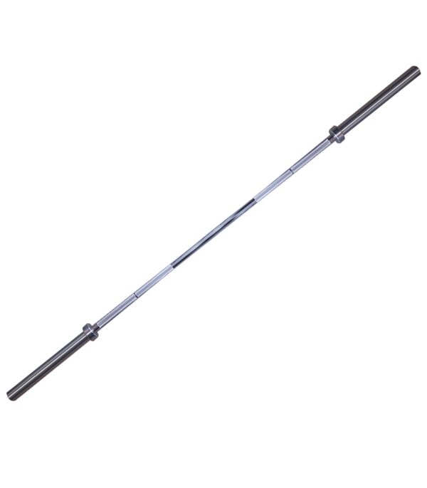Barre en acier chromée, compacte et parfaitement équilibrée, elle s’adapte en salle comme à domicile.